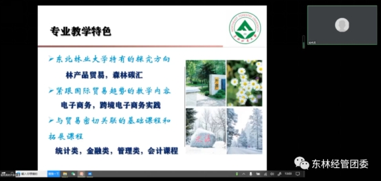 胡艳英老师对国际经济与贸易这一专业进行了全方面多维度的介绍,详细讲解了专业起源和学校特色,对专业特点及未来就业形势等方面结合黑龙江当地特点进行深度分析。明确告知同学们本专业的研究方向和发展前景,引导同学们将专业学习与未来规划结合。
